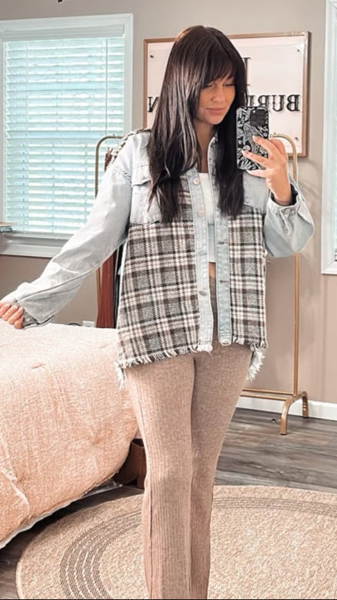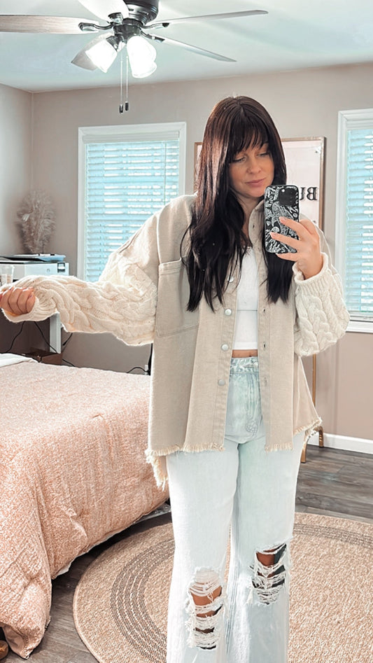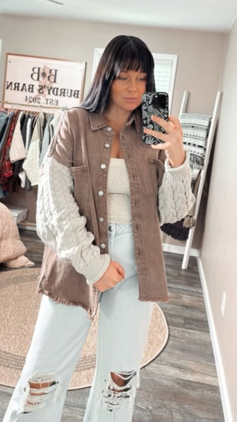 Lainey Button Down Sweater Sleeve Shacket (Choco/Almond)